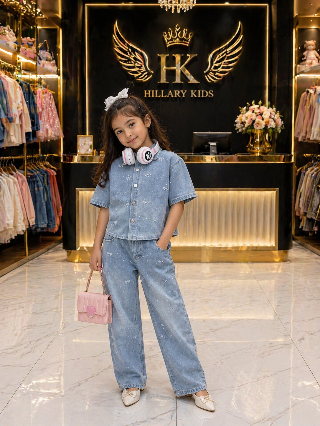 Conjunto jeans para niña, estilo coordinado de dos piezas con acabado de lujo.